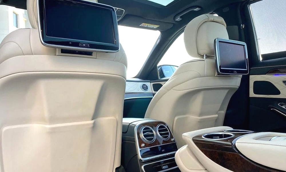 奔驰S400四驱拥有超大号的后排沙发,能独立调节仰角,还带有自动调节高度和伸缩的腿托,后排乘客通过按键能变成一张舒适的躺椅。中控台上看不到太多的按键设计,基本上把所有的功能都融合到了多媒体显示屏当中,而只需一个旋钮就可以进行操作,而且全部都是中文显示,简单而又轻松。