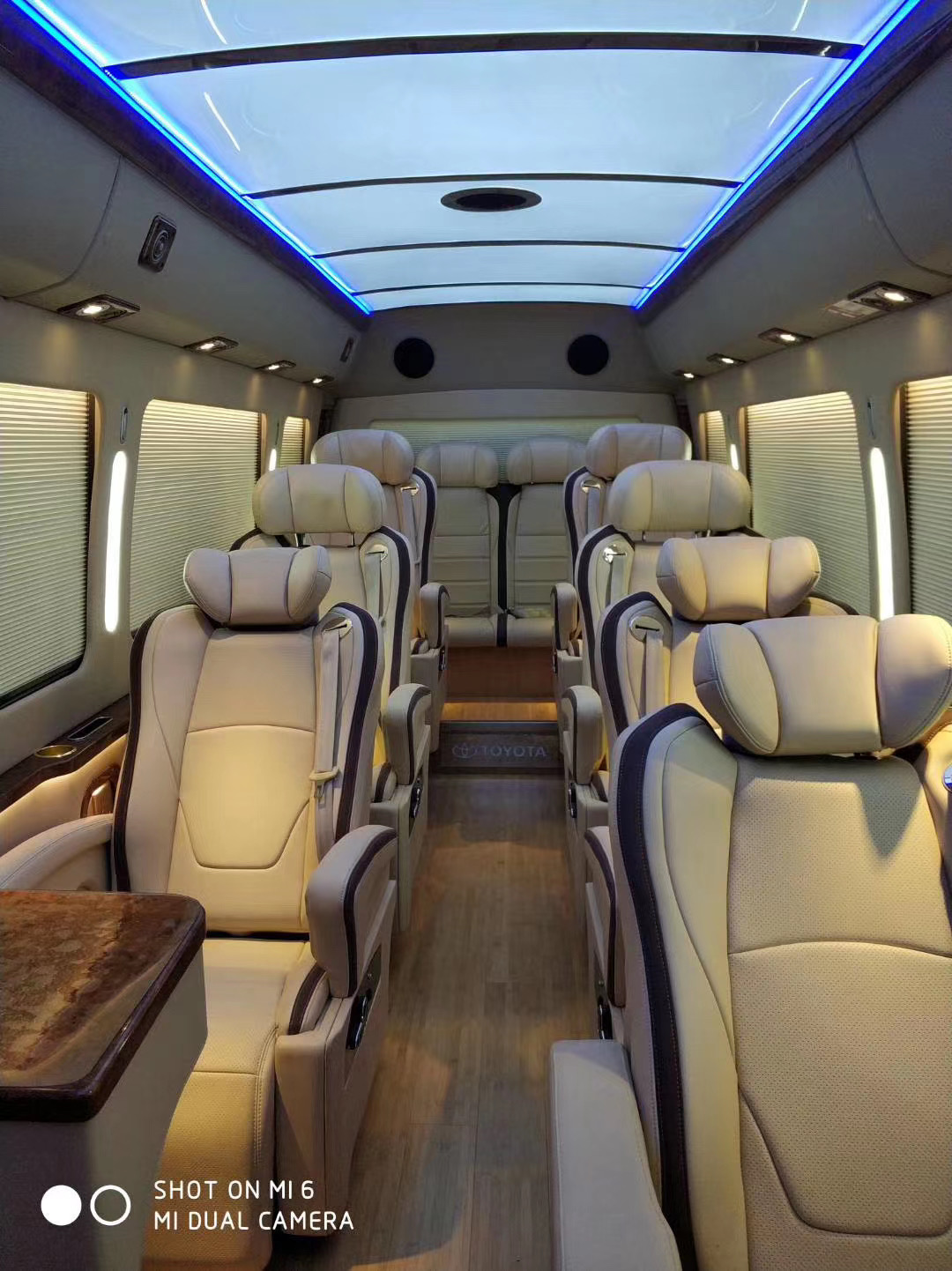 丰田考斯特13座经过专业改装,已达到办公娱乐于一体,配备4.0 V6发动机提供强劲的动力输出,整车造价落地达到150万人民币。整车主要配置:无线WiFi、55寸电视(可链接手机等设备)、全车埃尔法座椅(可八项调节按摩带加热)、空客A380顶灯、空气净化器、司乘私密隔断、电动遮阳帘、220V电源插座,冰箱、热水壶、卡拉OK娱乐系统、高档音响、十组可调氛围灯,秘书席微电脑一键全车控制,随心所欲,是您接待重要领导及客户的不二之选。