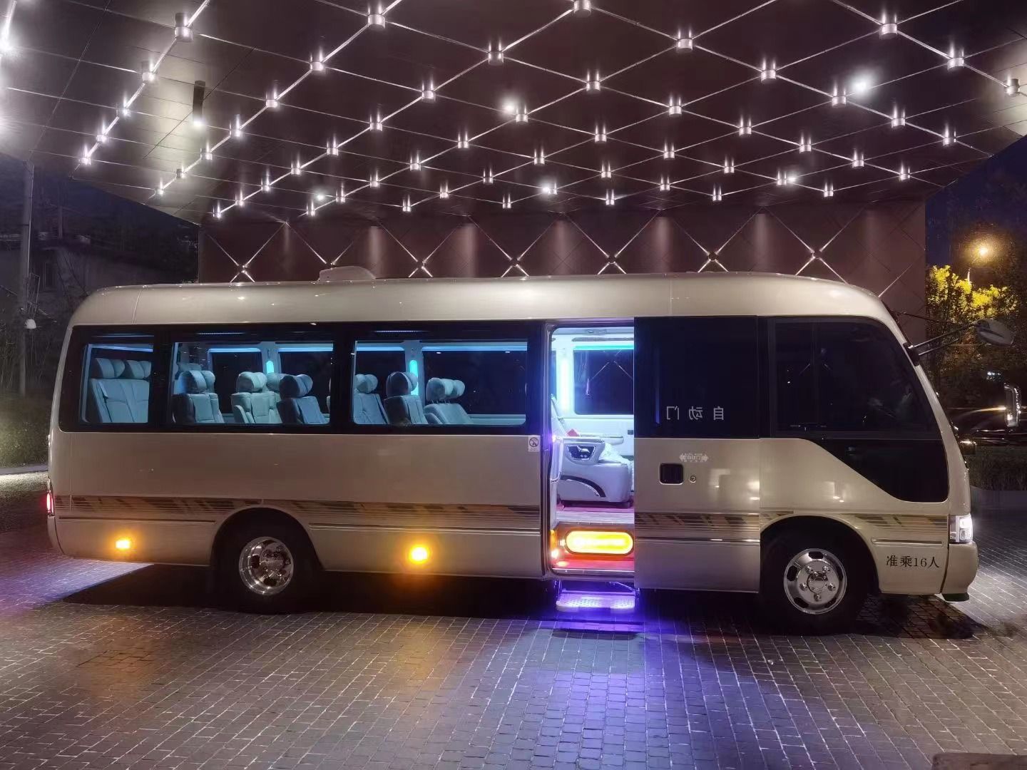 中巴车型:丰田海狮14座、奔驰MB100、18座九龙大马、17座~23座丰田考斯特等豪华中巴车;