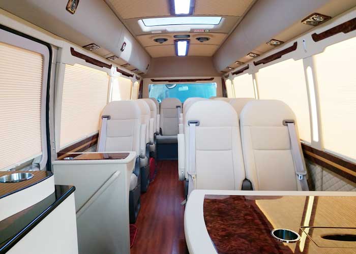 丰田考斯特改装商务车在内饰的设计上有着许多独特的设计,车内的座椅可以是真皮座椅,航空首长席以及原装进口的埃尔法座椅。座椅的真皮的材质有着不同的档次,真皮的颜色也有白色,米白色和棕色的区别。