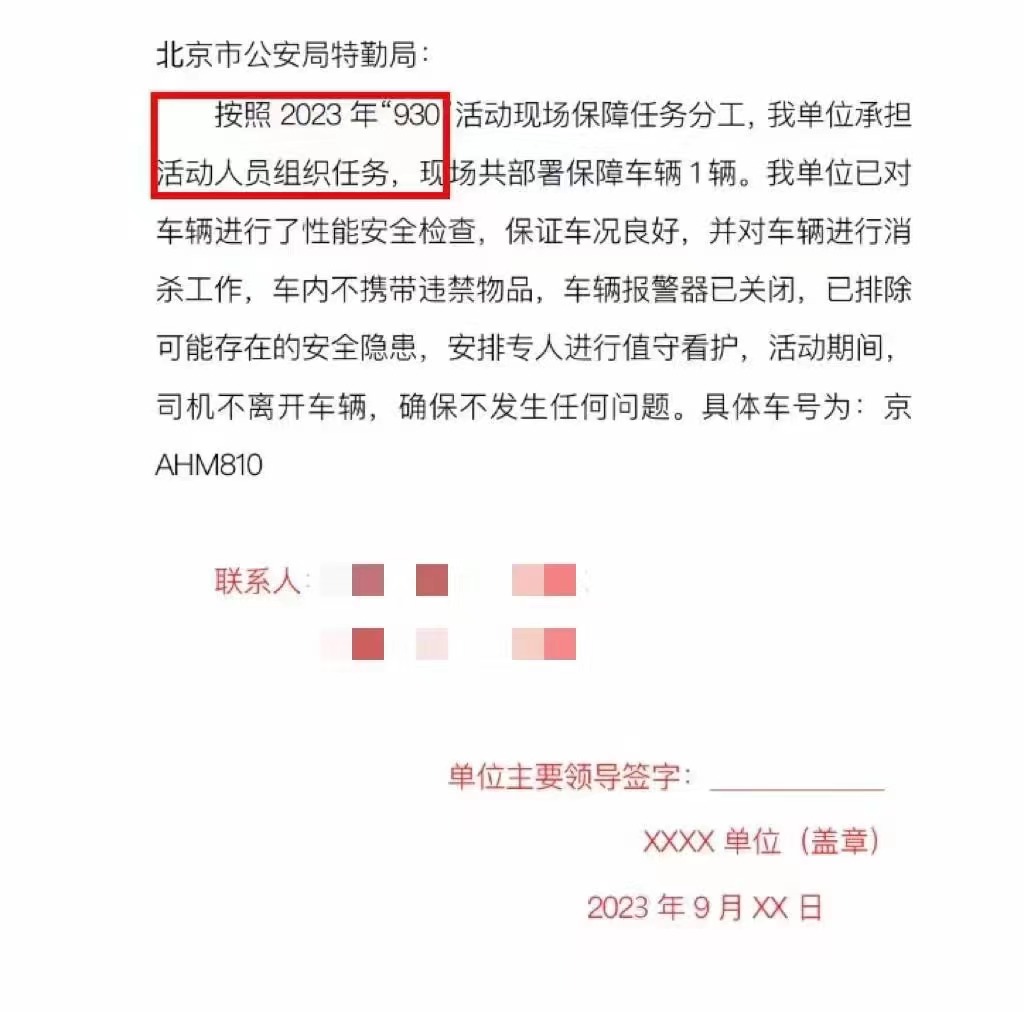2023年9月30日向人民英雄敬献花篮仪式提供车辆