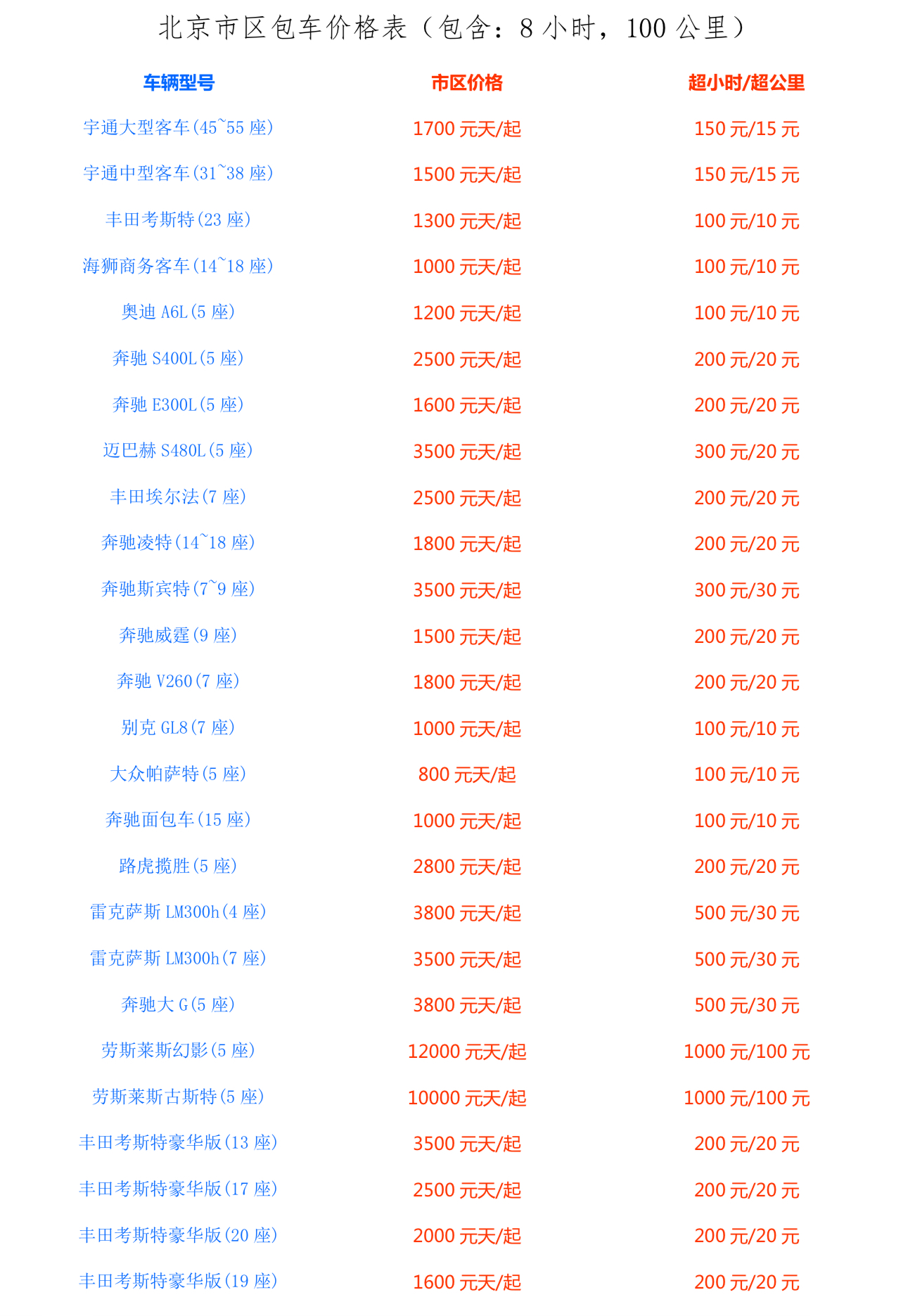 2024年北京租车最新价格表、商务车、大巴车报价明细
