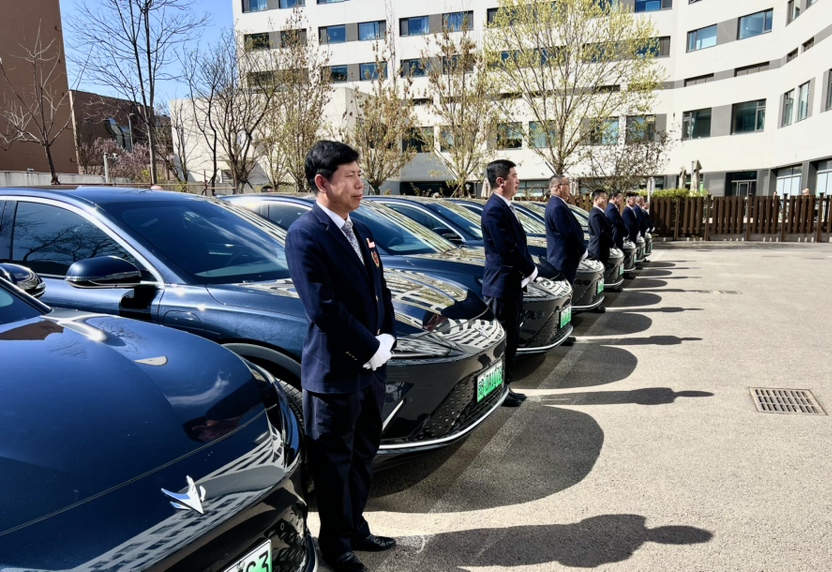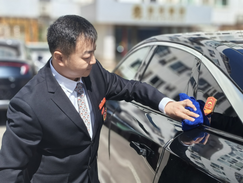 “您看我们这新车,极狐纯电车,性能好、噪音小,车内空间更大。”首汽集团三分公司党委副书记李昆鹏介绍。在他身旁,一排崭新的新能源车停放整齐,车辆擦洗得锃亮,从内到外一尘不染,“车净、人和是我们的服务标准。”