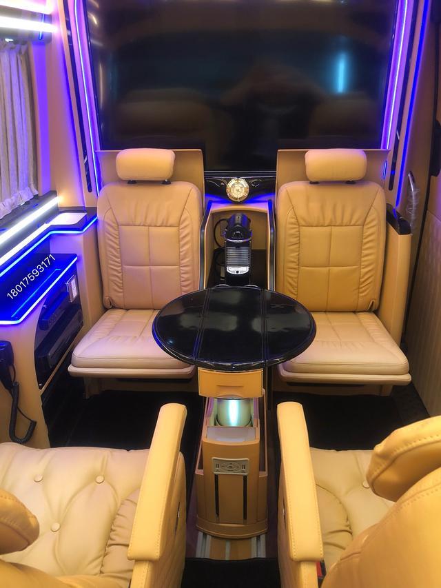 奔驰斯宾特皇宫版车长5.9米,宽2米,高2.8米,搭载5速自动挡变速箱,蓝牌C照即可驾驶。整车内饰颜色以浅黄色为主,搭配蓝色灯带和暖黄色灯光装饰,给人一种富丽堂皇的感觉。