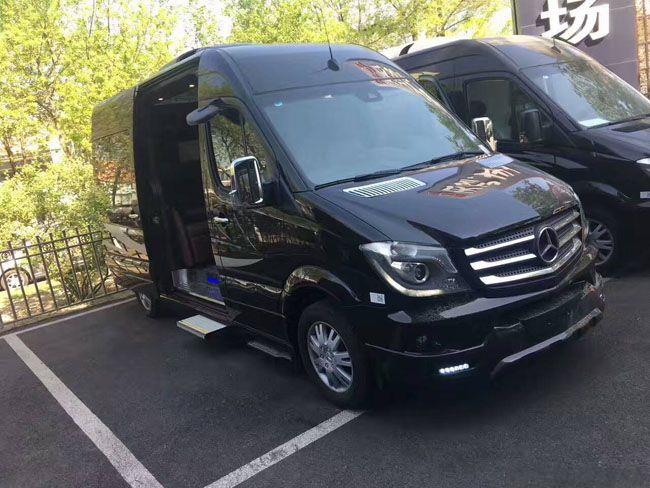 进口奔驰斯宾特车内大面积真皮包裹,前后排座椅均可向后大角度放倒,方面躺着休息,前后排均有触控屏幕,电动窗帘、全自动隐藏吧台、可升降高清液晶显示器、boss音响等等通过控制屏均可操作,另外还配备了可拆卸的办公桌。可办公,可娱乐,可拆卸——节约空间的同时也提高了乘客舱的高逼格。