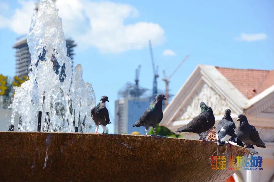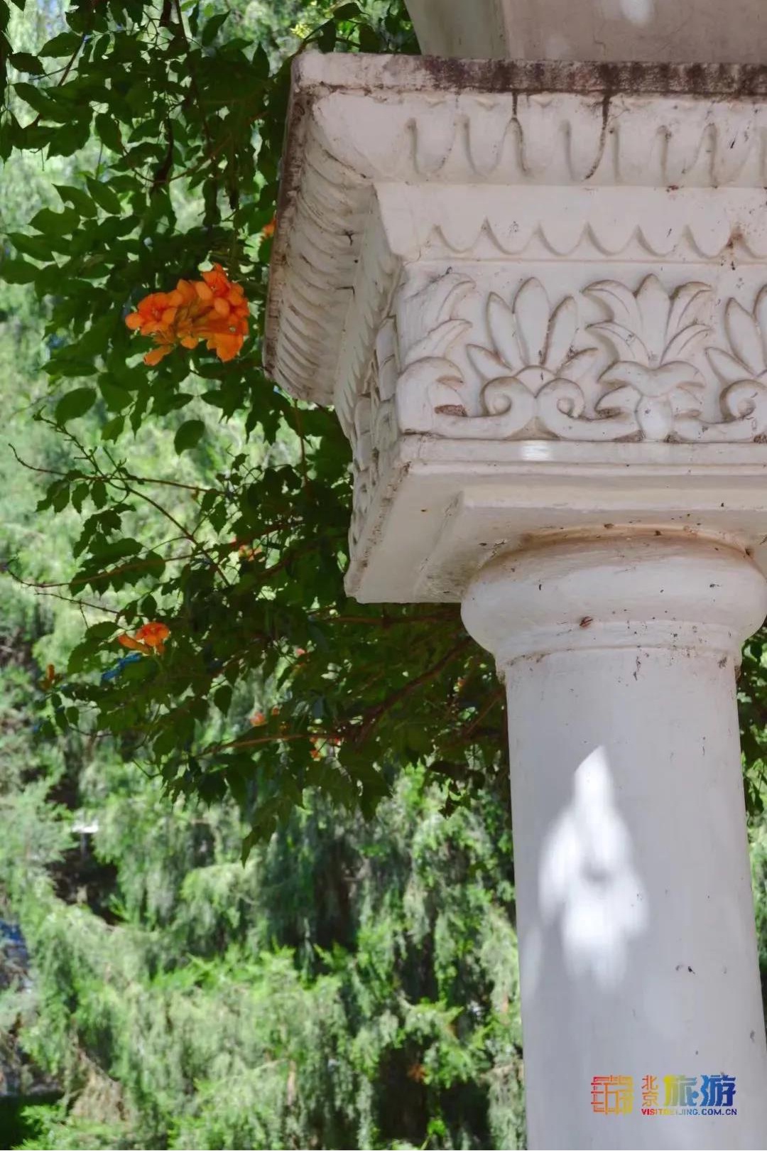 从酒店出来,在罗马柱旁歇歇脚,欣赏凌霄花。陪伴孩子们喂鸽子、看孔雀一起嬉戏追逐。