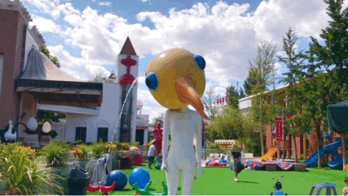 造型独特的雕塑、可爱造型的喷泉,遍布小镇各处,极具艺术感。