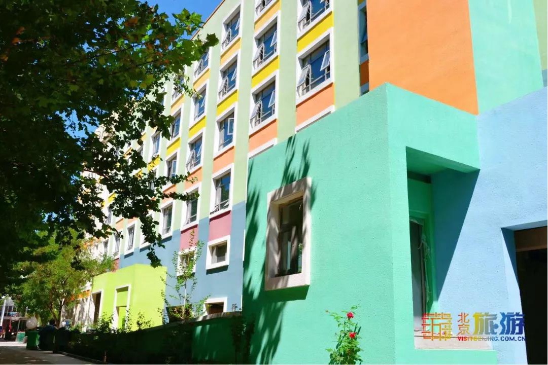 马卡龙色系建筑,十足小清新风格,拍照超好看!连停车场的围墙都是“长城”模样,这设计太有心了。