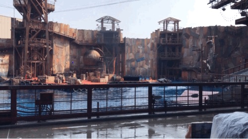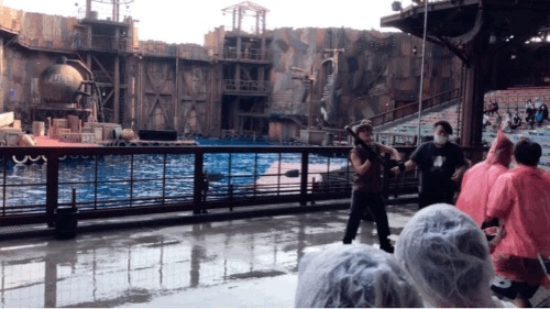 「未来水世界特技表演」太震撼了!精彩绝伦的环球影城水上特技秀,从水上摩托艇急速俯冲到飞机坠毁现场,现场尖叫声不断。小北自带雨衣坐在全湿区,不然怕是要单花60元买雨衣,或是坐在后排全干区。开场前演员会与观众互动,燃爆全场。