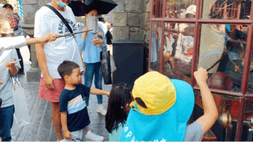 首先必须要早起,独家排队及早餐攻略(←点这里),挤进园区门口的队伍,离成功更近一步(VIP游客可忽略),无聊的时候还可以用魔杖捶捶背。