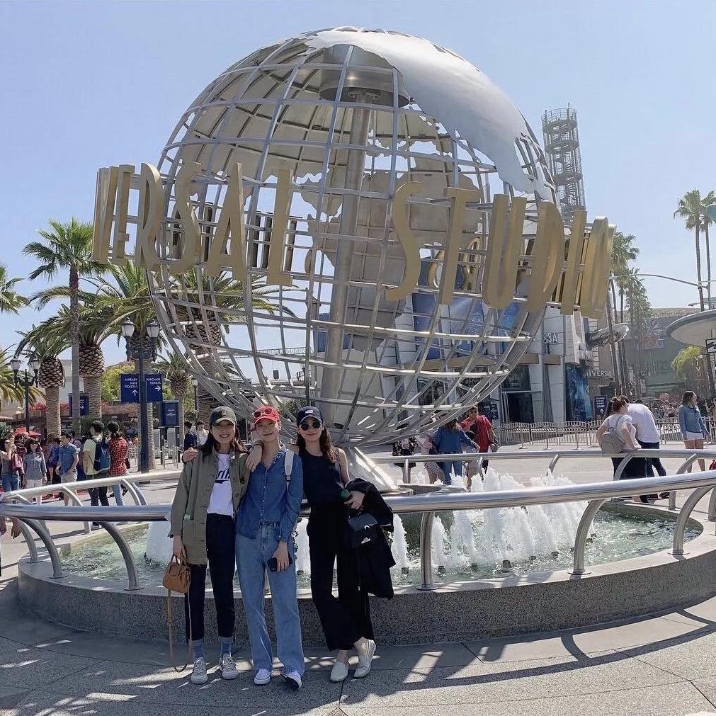 (周杰伦与昆凌夫妇在美国好莱坞环球影城)