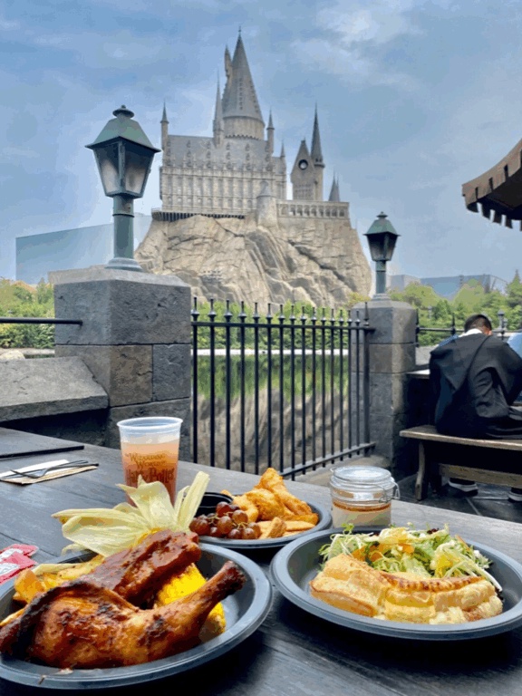 三把扫帚餐厅是午餐的必选之地!坐在楼上露台用餐,以整个霍格沃茨城堡为背景,这里也是绝佳的观景位置!