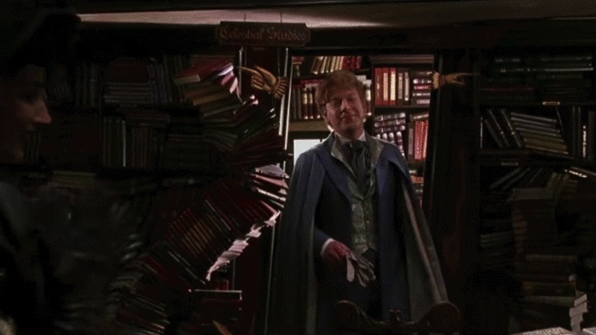 走到书店的橱窗,你会发现一个老面孔——Kenneth Branagh扮演的黑魔法防御课老师,罗恩他妈还在书店要过他的签名,属于中年妇女追星靳东的水平。