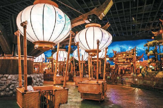 功夫熊猫盖世之地景区取材于梦工厂系列动画影片《功夫熊猫》,围绕“中国式传奇体验”进行设计,打造全室内景点。在“灯影传奇”“和平山谷”“熊猫村”景点,游客和主人公阿宝一起穿越电影银幕,体会别样中国风。