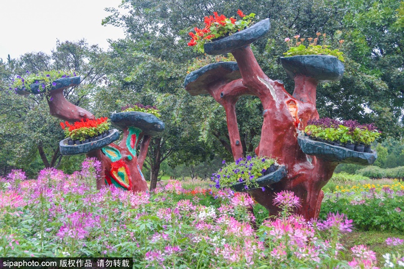 杨树林花海作为核心展区,使用多种地栽菊花打造“福”字等多处旖旎景观;杨树林北侧区域为自育菊花品种展示区,共栽植27个菊花品系,涵盖了单瓣、半重瓣、重瓣、桂瓣四大类瓣型和红、粉、紫、黄、白五大类色系;月季园的北圈则为3000平方米的标本菊展示区,通过将标本菊与现状月季结合集中展出的方式,突出市花主题,打造精品展示景观效果。同期,园区内还会开展多种文化活动,如世界珍稀濒危植物展、盆景展以及主题科普讲解活动。