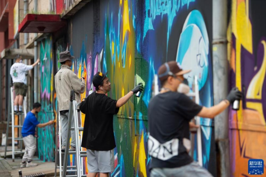 9月26日,涂鸦艺术家在798艺术区进行涂鸦创作。 新华社记者 陈钟昊 摄