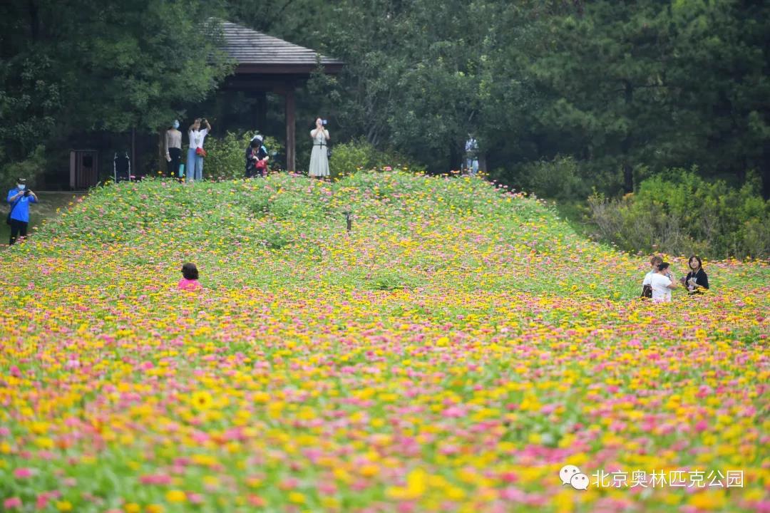 奥森北园花田野趣景区正在举办“第十届奥林匹克森林公园花卉观赏季——波斯菊展”。在夏季向日葵盛开的地方,如今波斯菊正盛开。五颜六色的小花随访摇曳在秋风里,周围绿树环绕,市区就能享受的负氧离子满满的环境是许多人的最爱。