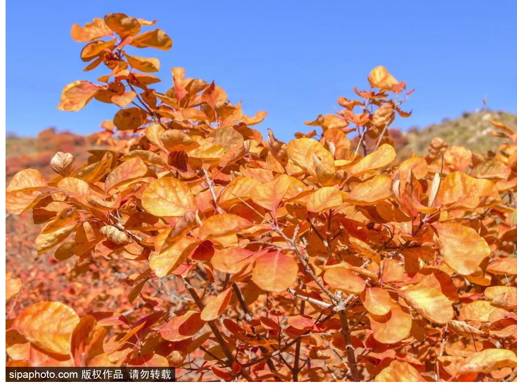 舞彩浅山的彩叶林包括火炬、黄栌、元宝枫、银杏、白蜡等50余种树木。