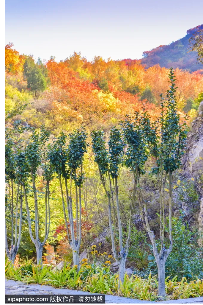夏季这里流水潺潺清凉怡人,秋季来临时,沟中遍植的彩色树种,层次分明,色彩艳丽~