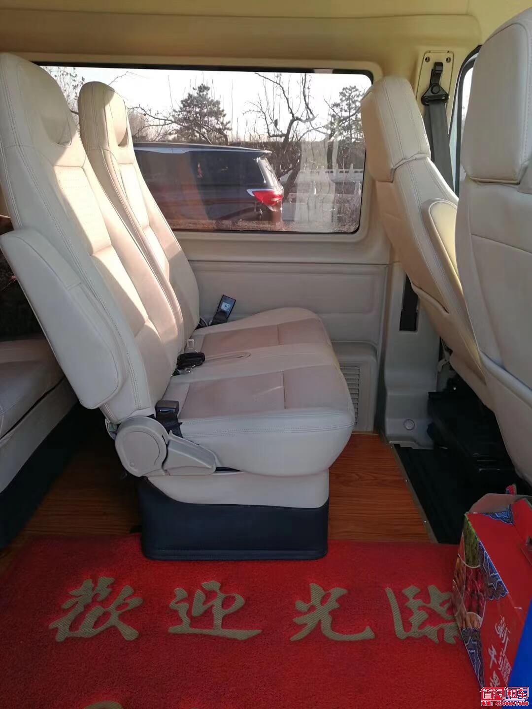 这款车型是15座小型巴士,除了司机可乘坐14人,车辆备有小电视。