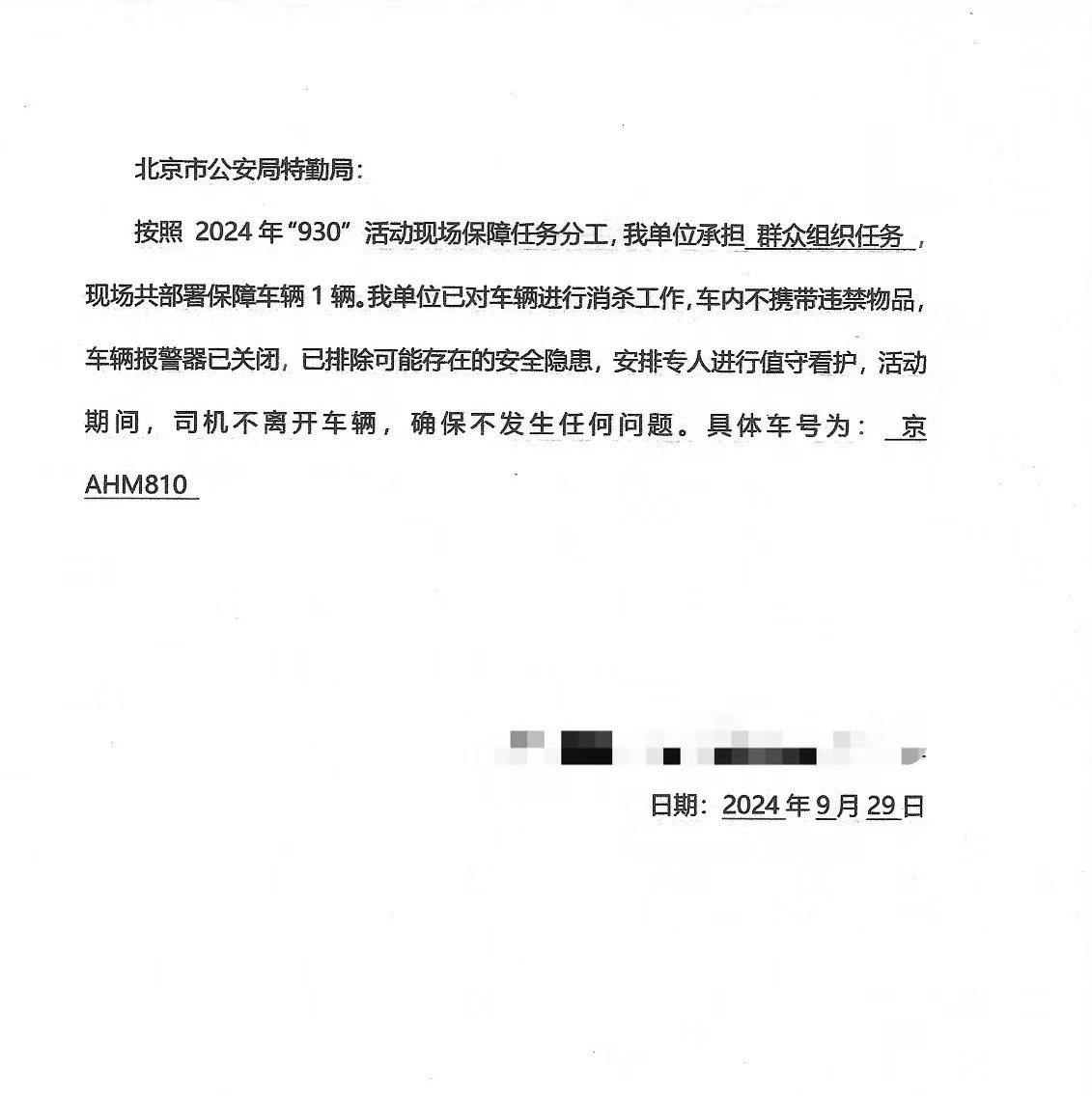 2024年9月30日向人民英雄敬献花篮仪式提供车辆
