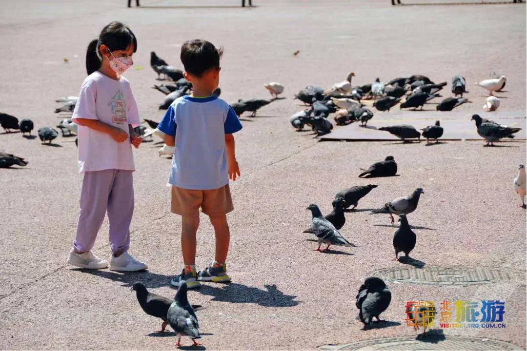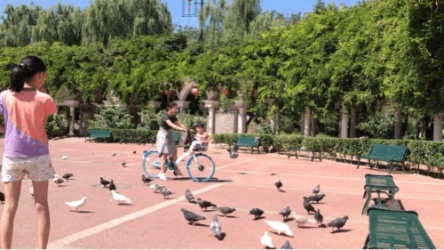 孩子们在广场上喂鸽子,儿童游乐区项目都是免费的。最近还新开了泵道公园,简直太低调了!趁着人少赶紧去!!!