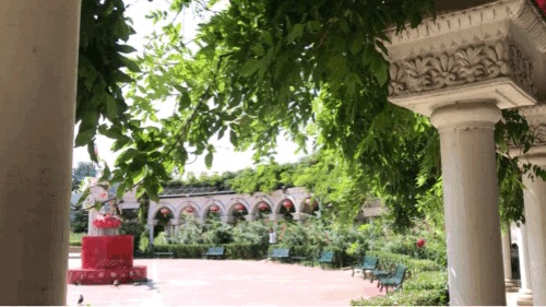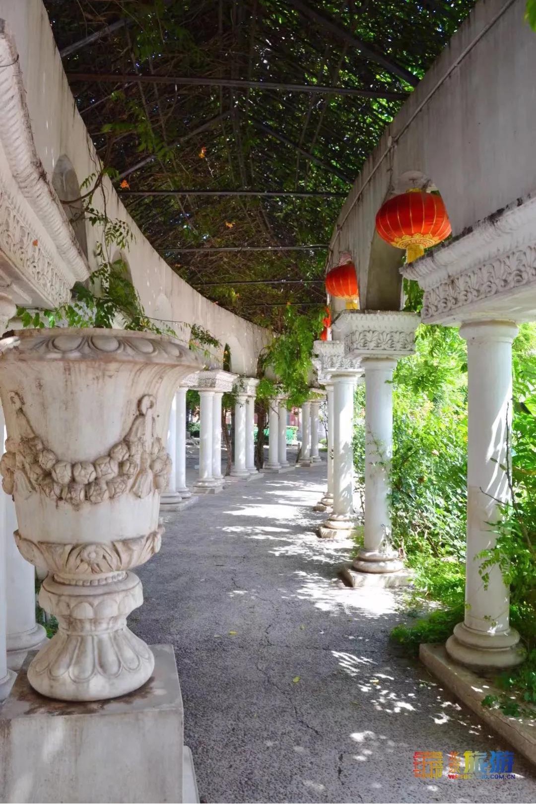 从酒店出来,在罗马柱旁歇歇脚,欣赏凌霄花。陪伴孩子们喂鸽子、看孔雀一起嬉戏追逐。