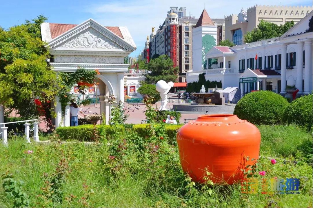 马卡龙色系建筑,十足小清新风格,拍照超好看!连停车场的围墙都是“长城”模样,这设计太有心了。