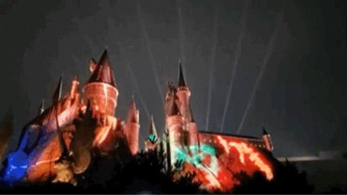夜晚欣赏「霍格沃茨™城堡夜间灯光庆典」,城堡上光影的变幻配上熟悉的音乐,回顾一天的行程,仿佛做了一场不愿醒来的美梦,虽然也有遗憾,但一切都值得!