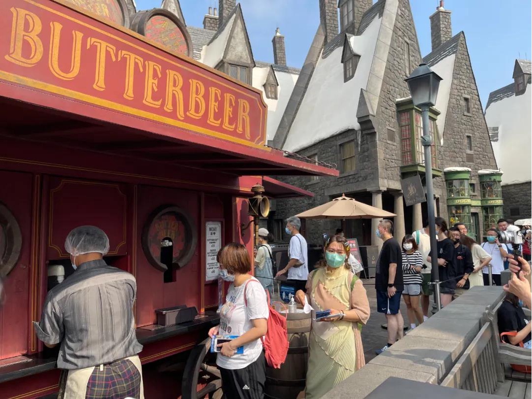 黄油啤酒™必须得尝尝,在霍格莫德™村的「三把扫帚™」餐厅门口和「猪头酒吧™」里都能买到,「猪头酒吧™」入口相对隐蔽,排队的人少。