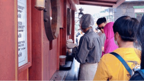 首先必须要早起,独家排队及早餐攻略(←点这里),挤进园区门口的队伍,离成功更近一步(VIP游客可忽略),无聊的时候还可以用魔杖捶捶背。