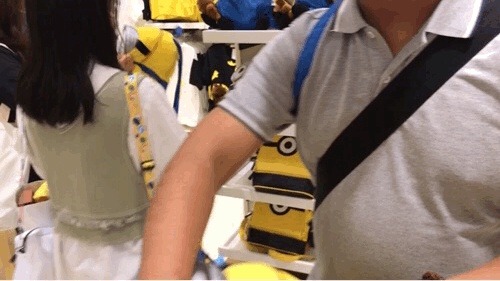 在一场「欢乐好声音巡演」, 在「小黄人见面会」与小黄人亲密合影,记得要说BANANA~小北在「小黄人市集」兴奋地给大家买礼物,十二生肖款的帆布包,小黄人大眼睛背包都超火!