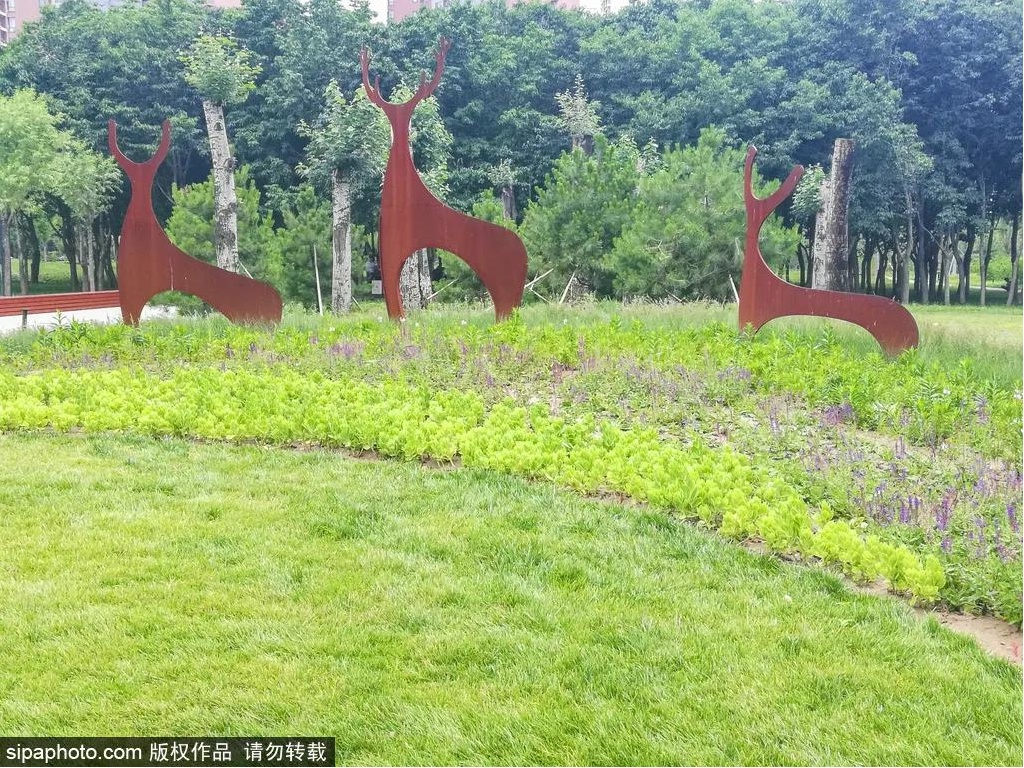 这里有精致的小森林,绦柳林、刺槐林、杜仲林等分布其中,林下遍植以玉簪为主的耐阴花卉,颜色层层叠叠,自然感十足。
