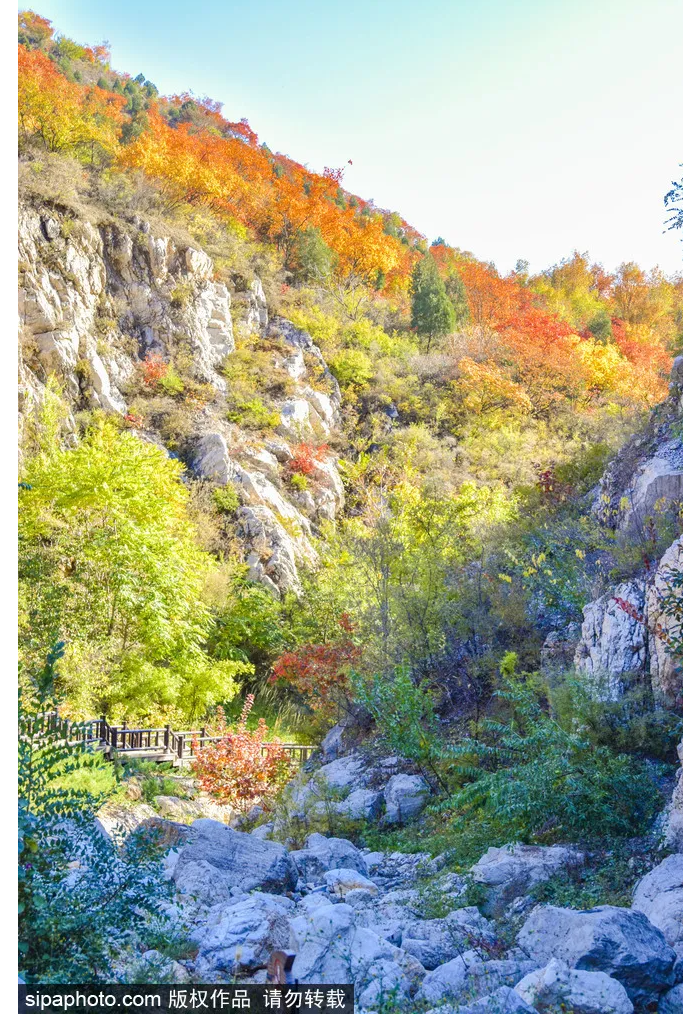 夏季这里流水潺潺清凉怡人,秋季来临时,沟中遍植的彩色树种,层次分明,色彩艳丽~