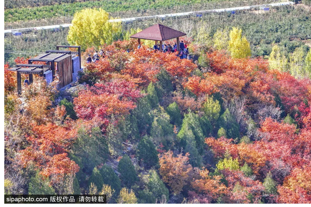舞彩浅山的彩叶林包括火炬、黄栌、元宝枫、银杏、白蜡等50余种树木。