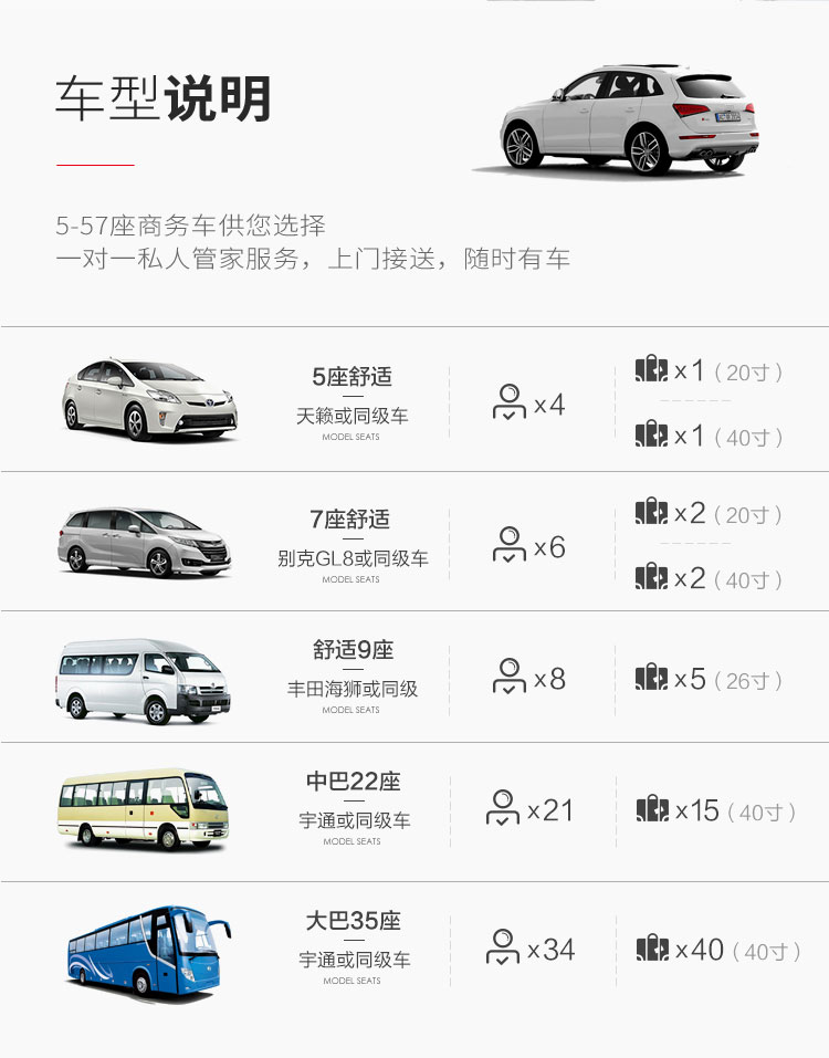 3.根据您预订的上下车地址(30公里内),您支付的总价包含一次接机用车服务的全部费用。